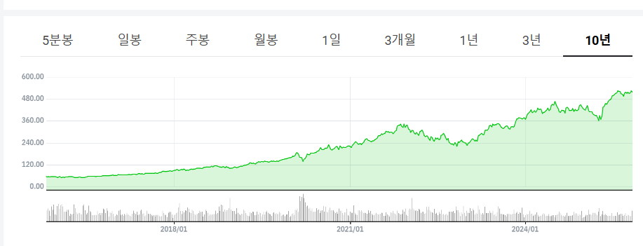 10년봉으로 장기간 그래프를 보면 나는 올해 시작한 지 얼마안되서 굉장히 높은 곳에 있다. 예전 100불 전에 샀었으면 어땠을까 하는 후회도 있지만 앞으로 10년이 더 기대되는 기업이기에 지금도 늦지않았고 나의 노후를 책임져줄 수 있는 귀한 기업이라고 생각한다. 지금 나는 30대 후반으로 60대까지 계속 주식을 모을 생각을 하고 있다. 내 사견이지만 앞으로 더 기하급수적으로 그래프가 우상향할거라는 생각을 가지고 있다. 화폐가치는 계속 떨어지고 시중에 유동성은 더 많이 풀릴 것으로 생각되기 때문에 큰폭으로 하락하거나 조정이오면 조금씩이라고 매수 할 계획을 가지고 있다.
